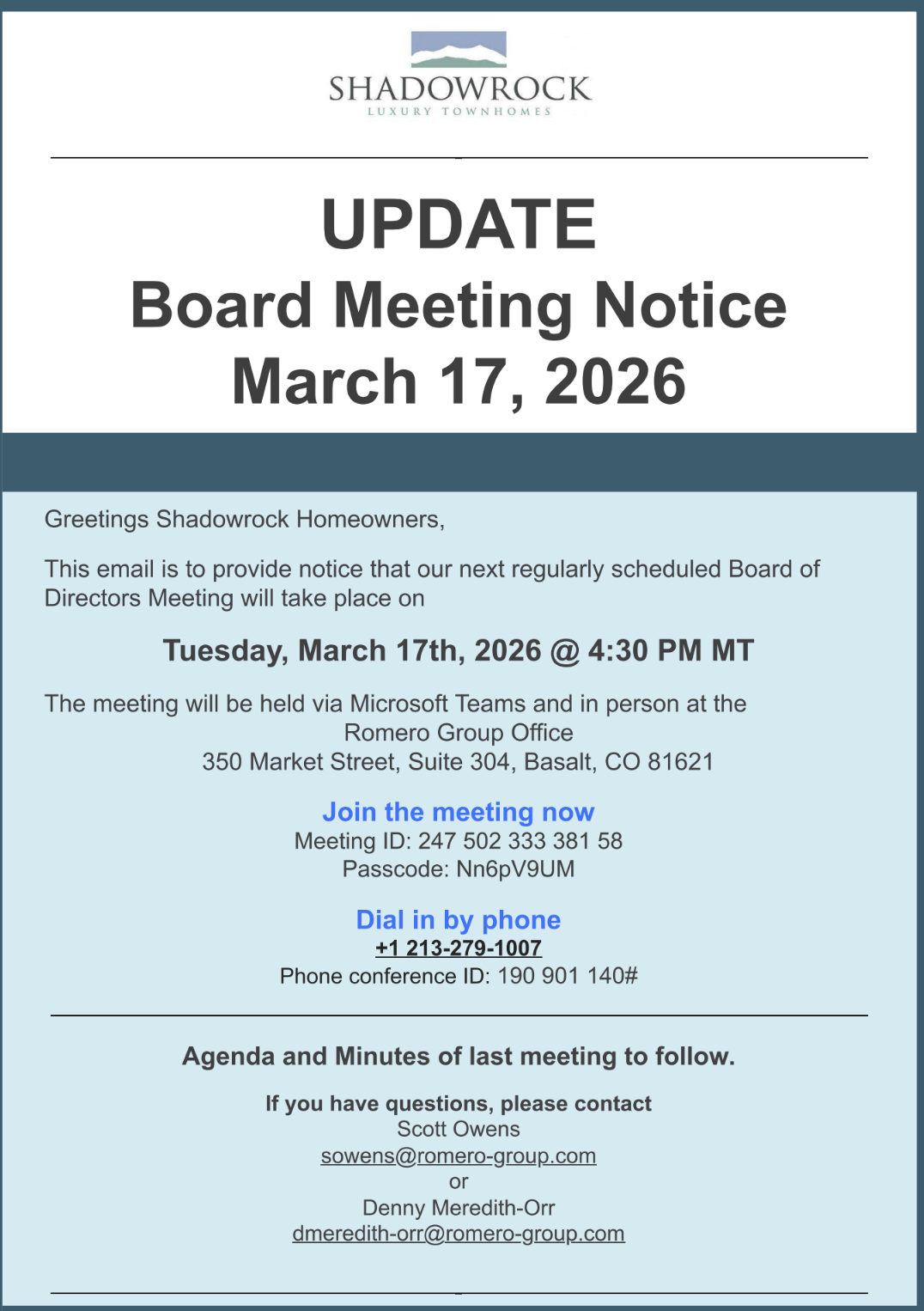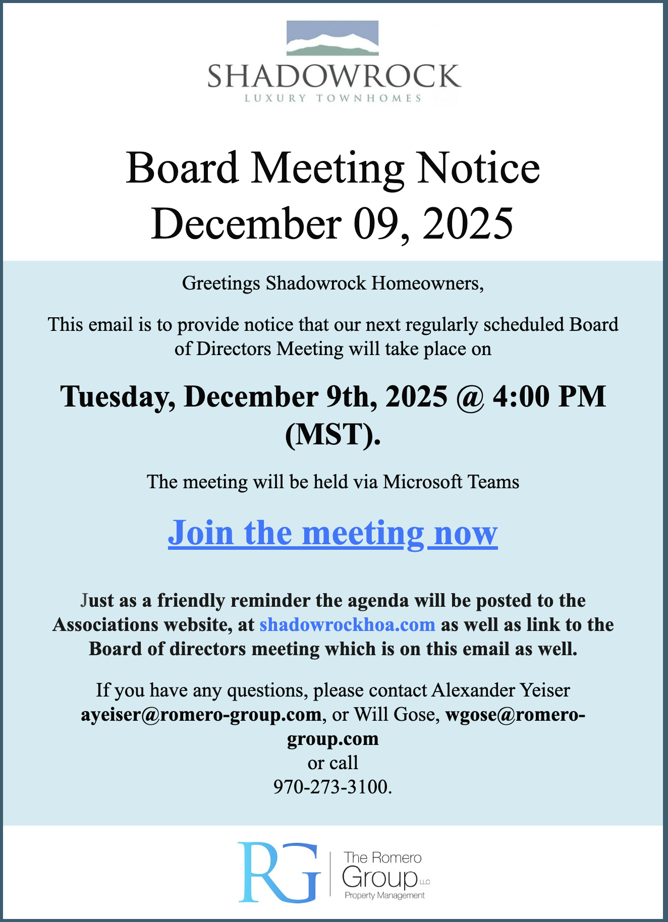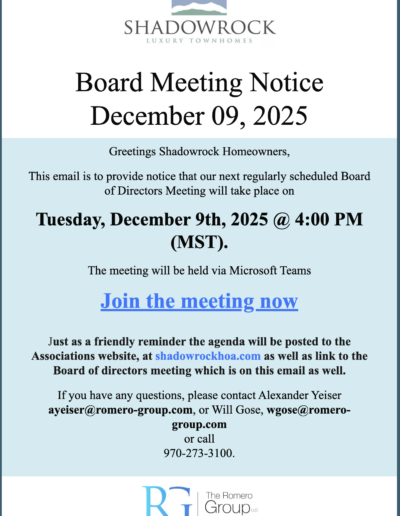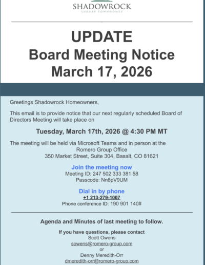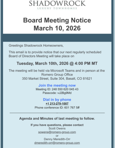 The Shadowrock Association is located in Basalt, Colorado. The Association offers a true community atmosphere, perfect for everyone. Use the button below to review publicly accessible Community Documents & Notices